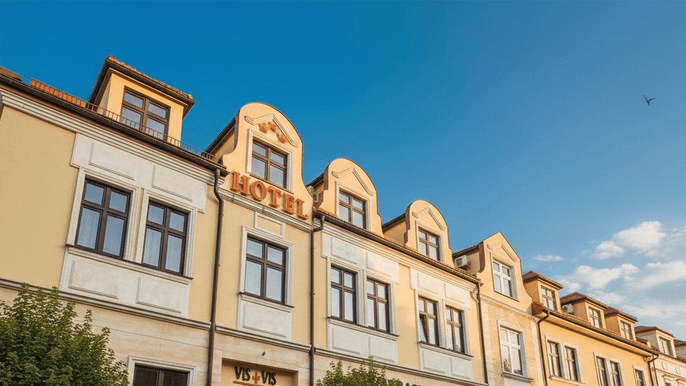 Hotel Vis à Vis to 17 stylowych pokoi z widokiem na Park Zamkowy lub miasto Łańcut. Każdy pokój łączy elegancję z domowym komfortem — klimatyzacja, nowoczesna łazienka i dbałość o każdy detal.