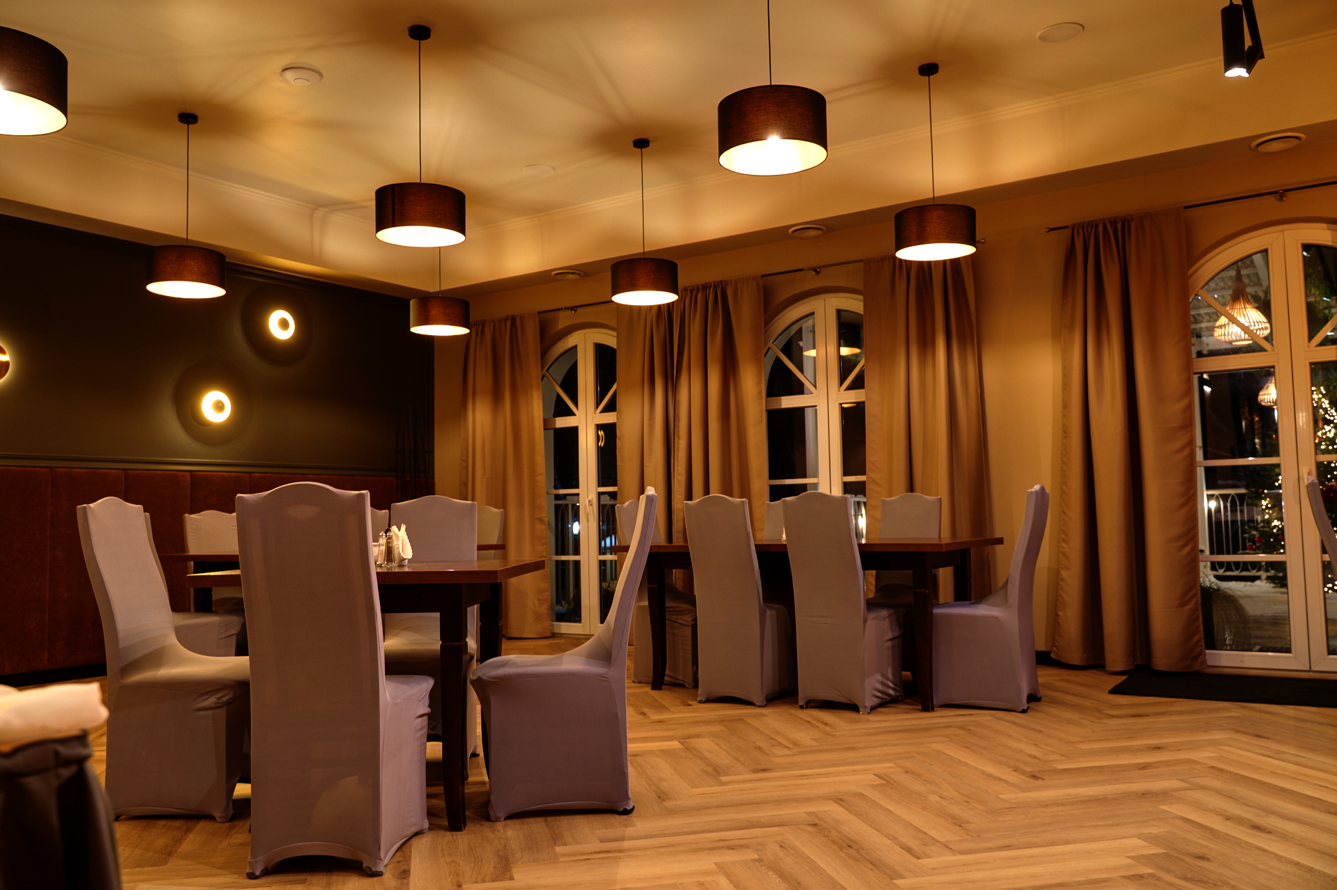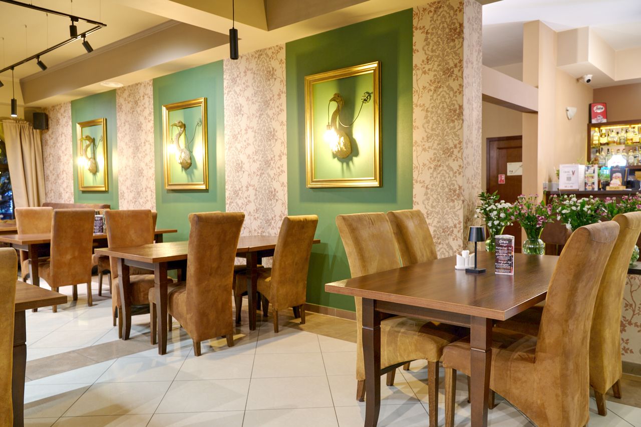 Restauracja serwuje tradycyjne dania kuchni polskiej oraz europejskiej. Kawa i deser dopełnią Państwa posiłek. Letni taras pozwoli cieszyć się bliskością parku zamkowego.