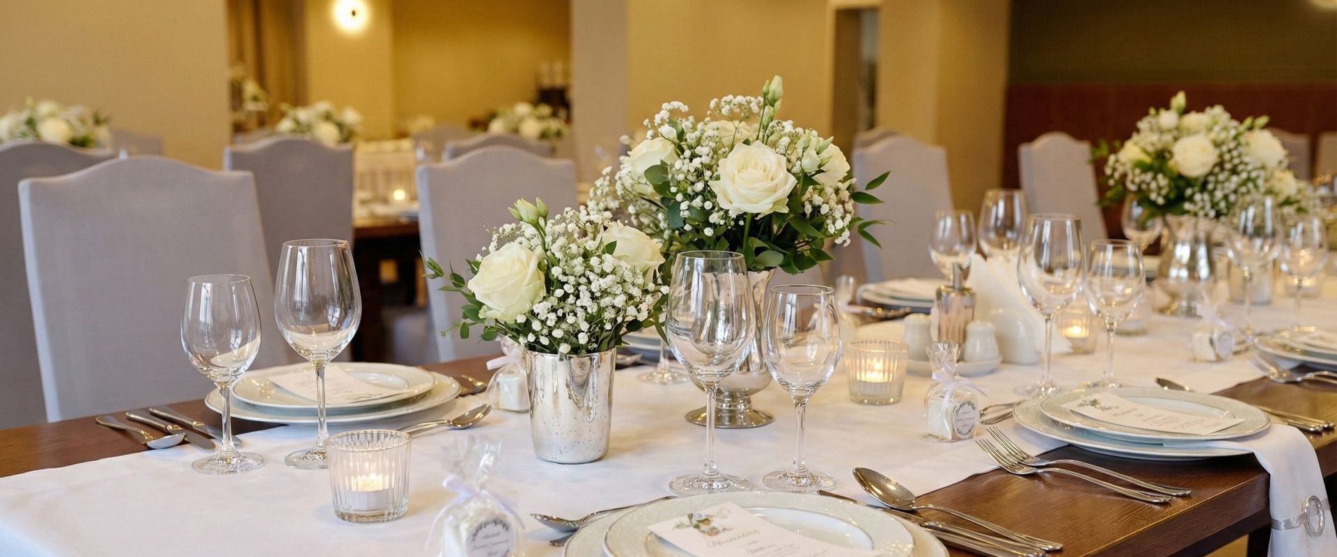 Oferujemy sale dopasowane do charakteru i skali wydarzenia, starannie skomponowane menu z uwzględnieniem gustów wszystkich gości, również tych najmłodszych, a także profesjonalną aranżację przestrzeni i pełną obsługę kelnerską.