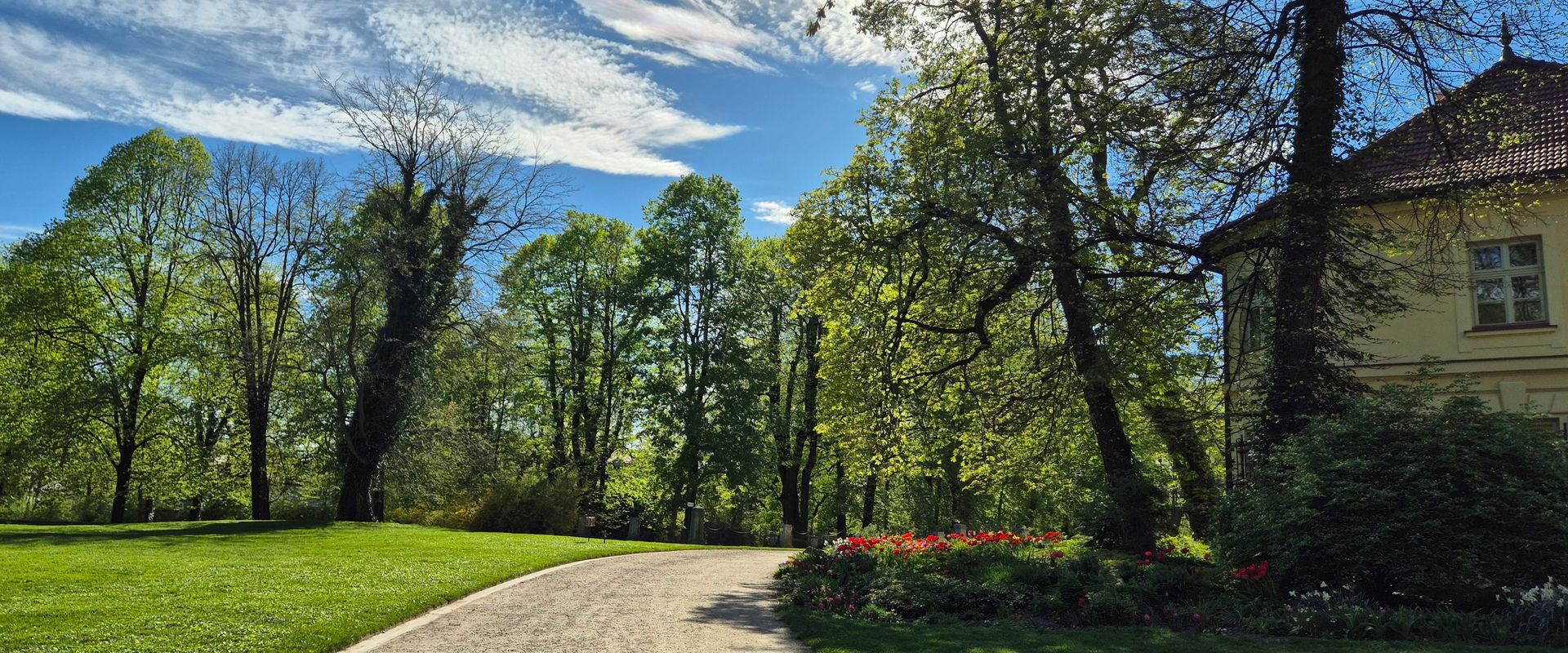 Rozległy park krajobrazowy w stylu angielskim z pomnikowymi drzewami, romantycznymi alejkami i malowniczymi zakątkami. Warto zajrzeć do storczykarni — pierwszej w Polsce ekspozycji poświęconej orchideom.