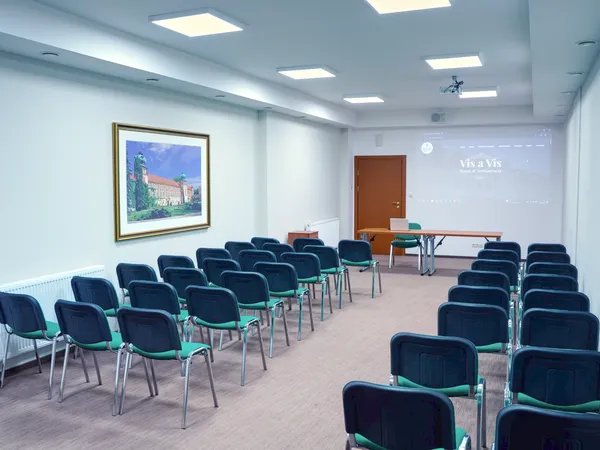Planujesz szkolenie, warsztaty lub spotkanie firmowe na Podkarpaciu? Sala konferencyjna w hotelu Vis à Vis w Łańcucie to 60 m² profesjonalnej przestrzeni z pełnym wyposażeniem audio-wizualnym, pomieszczącej do 50 osób w ustawieniu kinowym.